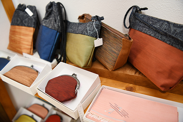 さまざまなサイズのがま口、ポーチ、バッグなども